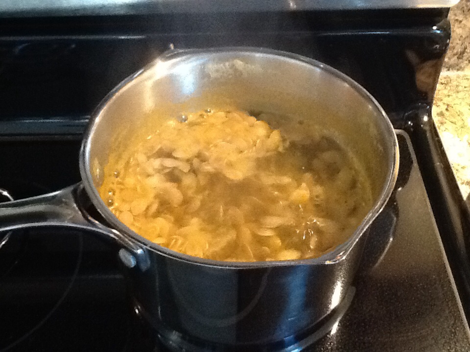 Put 1 cup of pumpkin seeds in saucepan with 4 cups water.