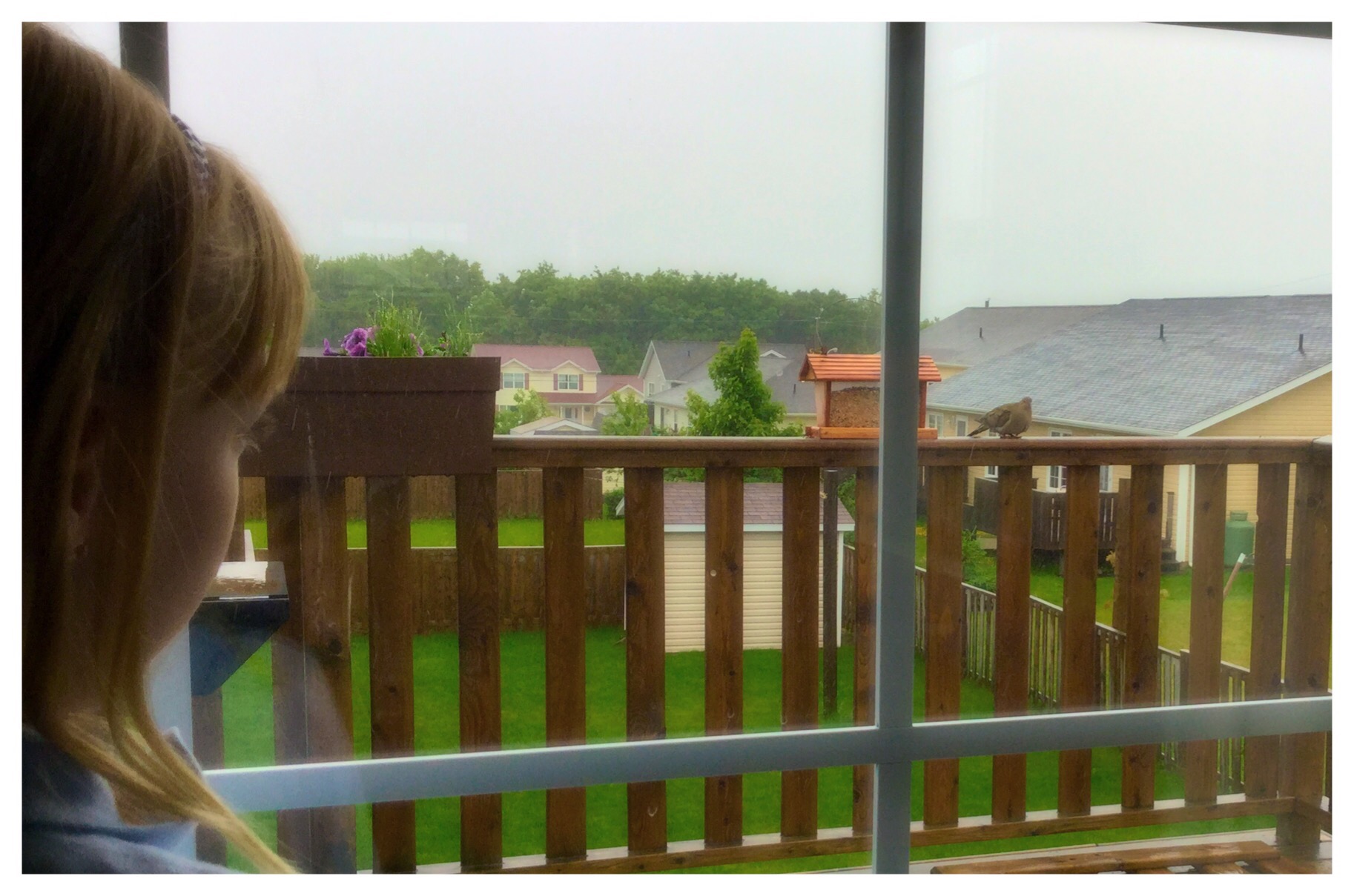 Even the ornithology course I took in university (that I enjoyed immensely) can’t compare to the pleasure it’s been to learn about birds with my kids this year.  It has been so much more than just interesting facts and transfer of information; it has been a delight!  It has felt like we are truly making friends with these amazing creatures.  We have been reading a chapter each week from the Thronton Burgess Bird Book.  What an entertaining introduction to ornithology for children!  Of course, yesterday we had to read the chapter on Mourner the Dove, after watching one for so long on our deck.  Each week I search for and print out some sort of picture or colouring page for the species in that week’s chapter, and the girls colour it in and add it to their bird notebook.  They have quite a collection at this point.    Many of the ones we’ve read about we haven’t had the pleasure of observing firsthand yet, but some of the very common birds we have seen in person over the course of the year are: