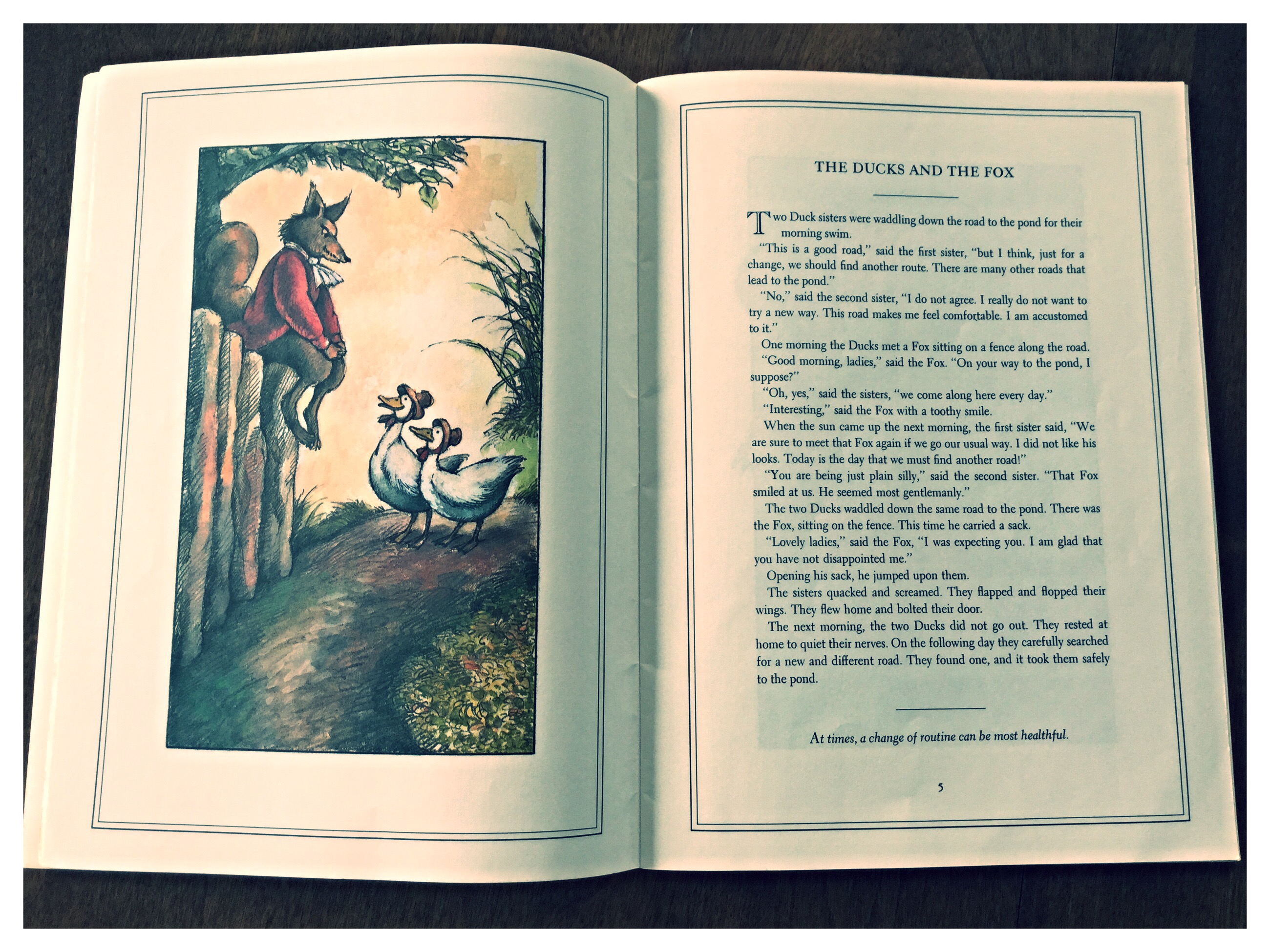 The nursery rhyme book is something I got for Boo to read with Belle this year.  I am planning to have Boo read something short and simple to Belle daily, rotating between picture books, fairy tales, Bible stories, nursery rhymes, and fables.  So I was also happy to find this book of fables by Arnold Lobel.  We LOVE his stories, and Boo read many of them as first grade readers last year, so this book will fit the fable category nicely for Belle and Boo to read together this year.