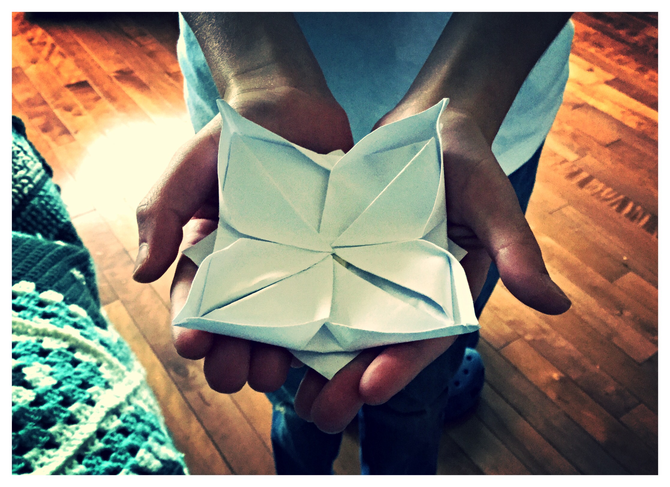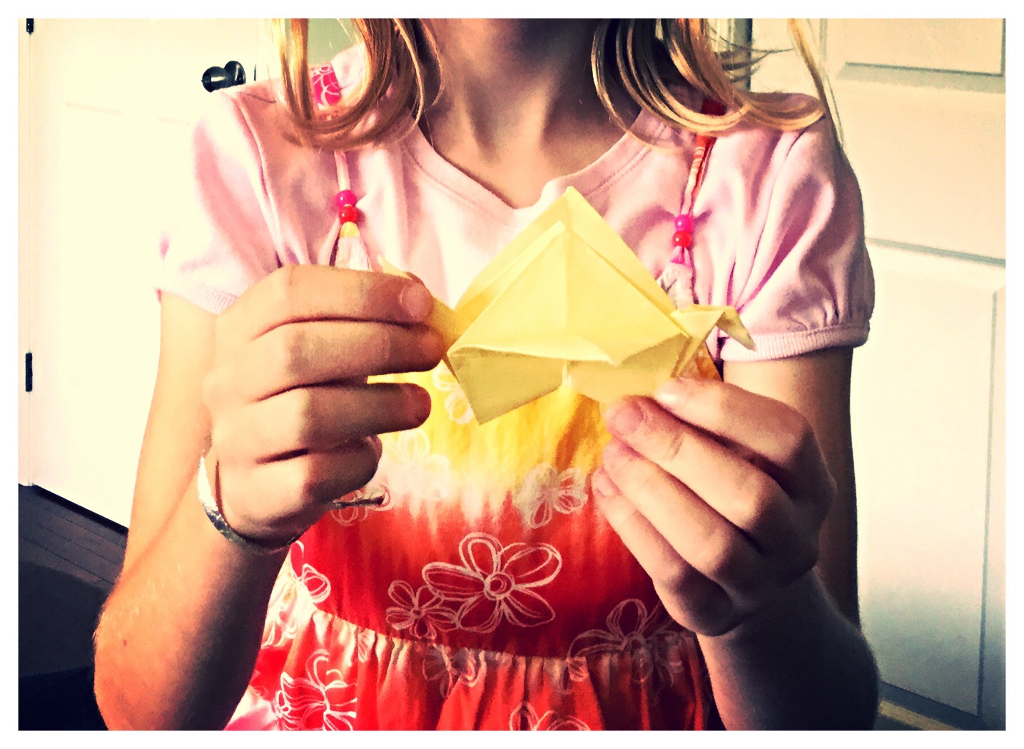 She thinks there should be an origami booth at those carnivals and fairs where people make and give away balloon animals to kids. And why not? I mean who wouldn’t be amused by a paper ball, a bunny that wiggles his ears, a bird that flaps its wings, a boat you can float, a noisemaker, or kaleidoscope? It’s pretty fun stuff!