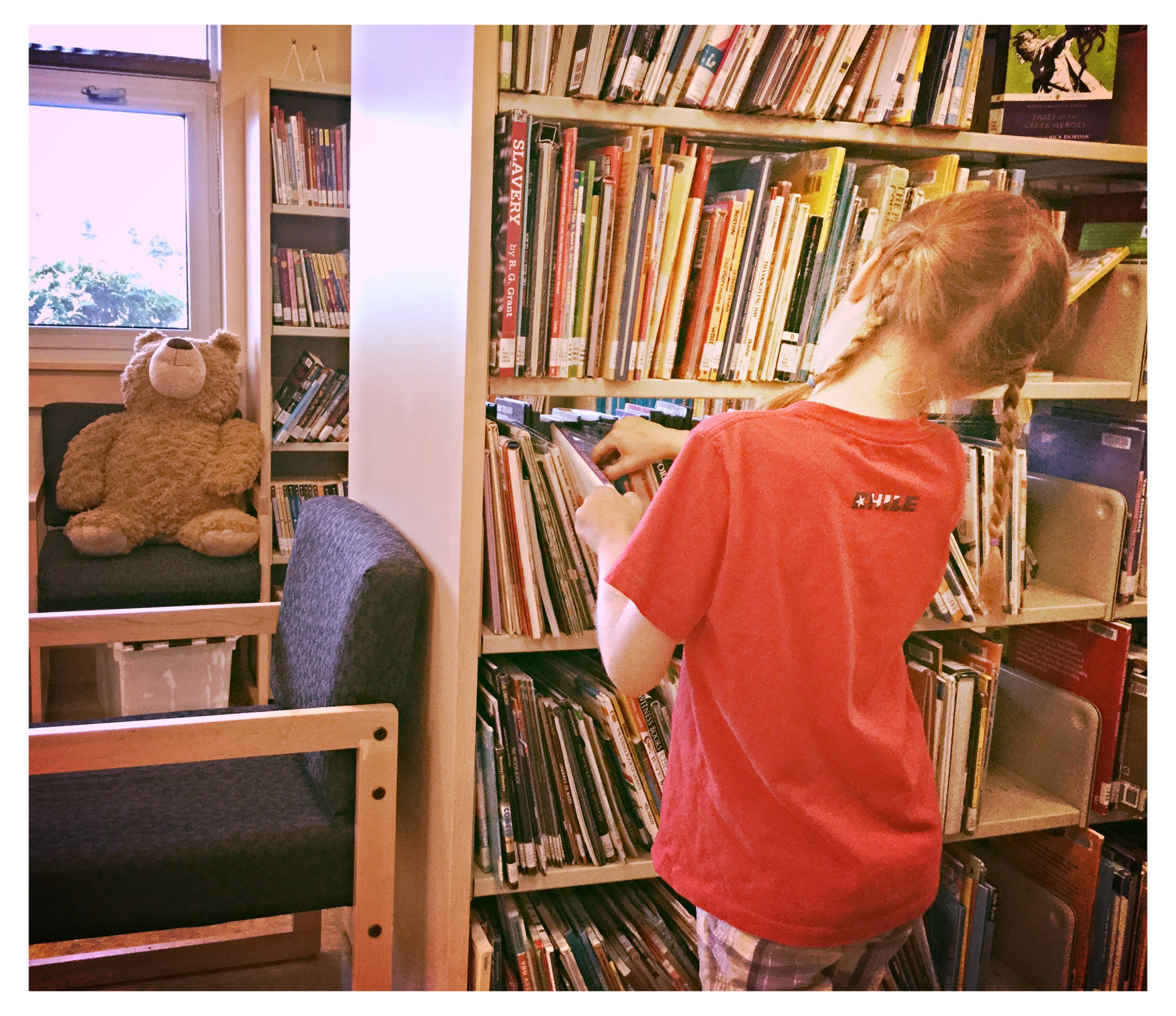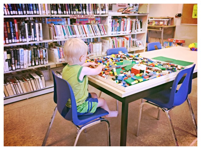 So what do you do on a Wednesday afternoon that feels like 36 degrees Celsius outside? Well, the option we chose was to hang out for a bit of relief at our favourite library…enjoying the amusements AND the air conditioning! I know some of you are probably reading this, thinking, ‘A 36 degree humidex? That’s it? What a wimp!’ And, yes, I freely admit it. When it comes to heat, I am a wimp. I was made for a northern climate. After all, there is Viking blood in these veins. But there is no way I am going to complain about this heat after the horrendous winter we had. I am determined to enjoy it somehow…even if it means escaping to somewhere cool for a bit! I know the crisp, cool air of autumn is just around the corner.