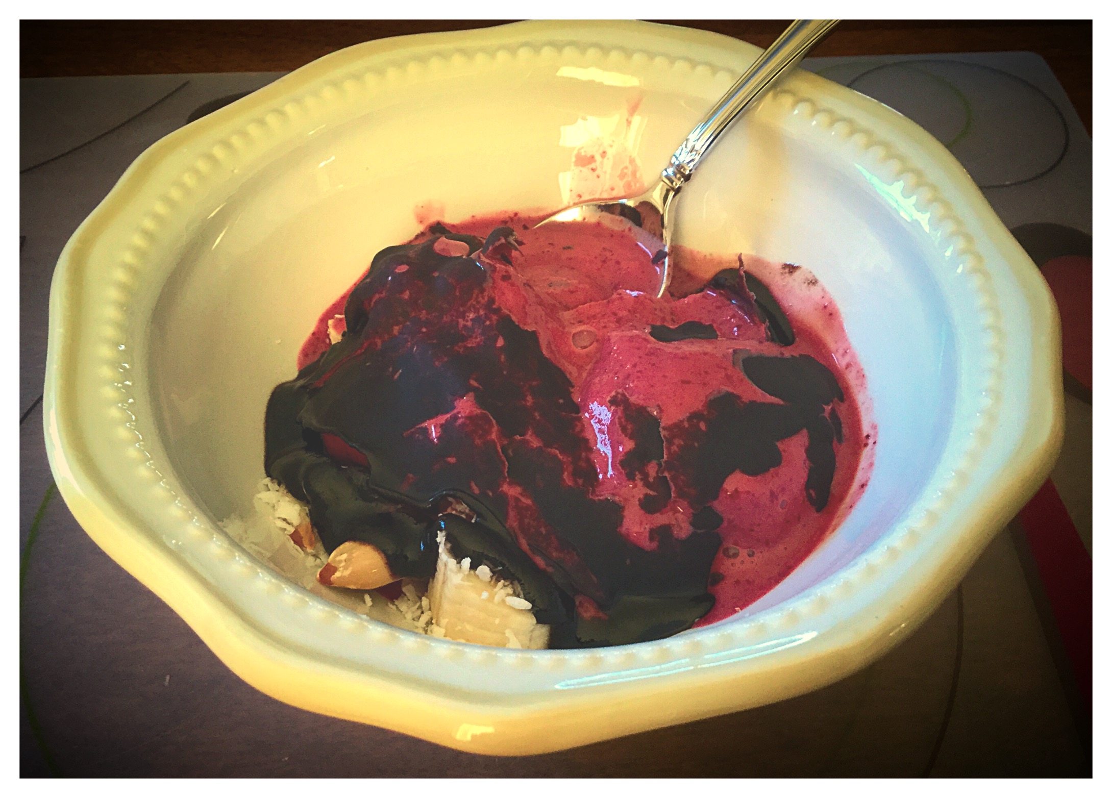 A couple of weeks ago, PJ came down with a sore throat and cough. This bug has been making the rounds through the household this week. I seem to be hit harder with it than the kids, but it could just be the insanity of preparing and packing for two weeks of vacation on top of trying to do school that’s catching up with me. Wednesday was a particularly bad day. Colds and crankiness abounded in the ranks, and school was a challenge to say the least. In hindsight, we should have taken a “sick” day, but we persisted and survived to enjoy ice cream sundaes for supper. Yes, ice cream for supper! I figured that would be a better memory for the kids than a day of discord! In my defence, I did make frozen yogurt in the Vita-mix with homemade yogurt and frozen cherries. Our chocolate sauce was just cocoa, coconut oil, and maple syrup. And we did put chopped banana and peanuts on top. Doesn’t that kinda make up for the mini-marshmallows and gummy candies?image
