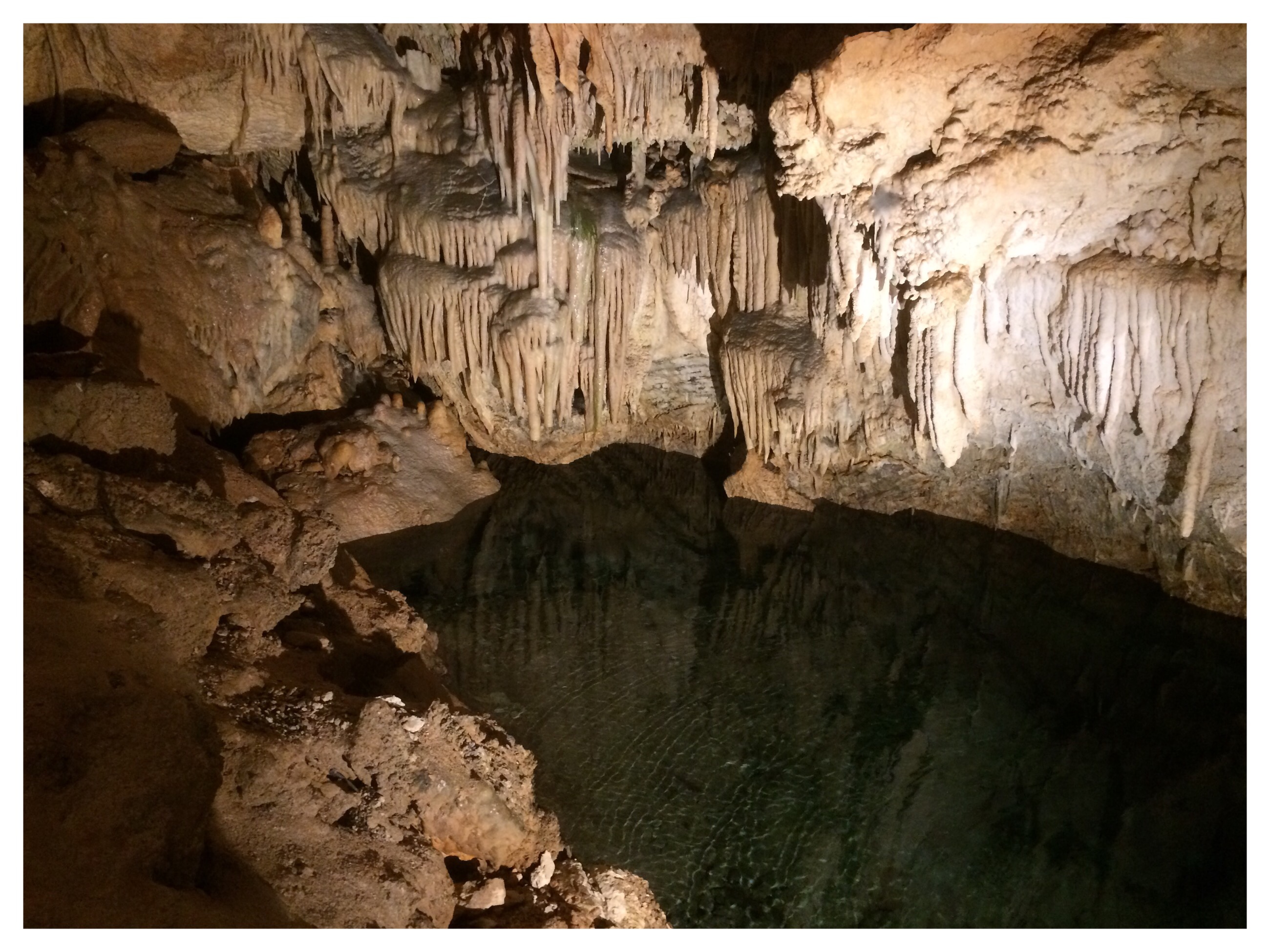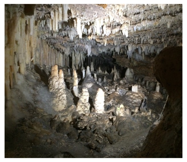 The Crystal Cave tour was another highlight of our sightseeing in Bermuda. The cave is fascinatingly beautiful. There’s no life in the water of course because there is no sunlight that reaches into the caves. However, we did learn about a species of shrimp that has adapted to living in the dark caves. They have no eyes. They are translucent. And, get this – they live off of bacteria that grow on their legs! Ick! If they get hungry, as our tour guide so eloquently put it, “They just lick a leg.” The mingling of fresh water (rain water that drips down into the caves) with the salt sea water causes a prism effect where you can’t really tell accurately how far away the surface of the water is or how deep the water is. I couldn’t believe it was over forty feet deep. It looked more like ten!