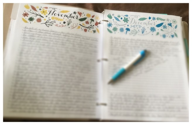 Last year one of my goals was to take the Joy Dare and follow along with counting one thousand gifts using Ann Voskamp’s printables. She gives a suggestion each day for finding three gifts to give thanks for. Well, to sum up, it was a bust. I just couldn’t keep up. I didn’t make it enough of a priority I guess. Anyway, at the start of this school year, back in September, I set my sights a little lower. I knew I wanted gratitude to be a part of my daily rhythm, but I wanted it to be simple enough that it would not get neglected when things got busy.