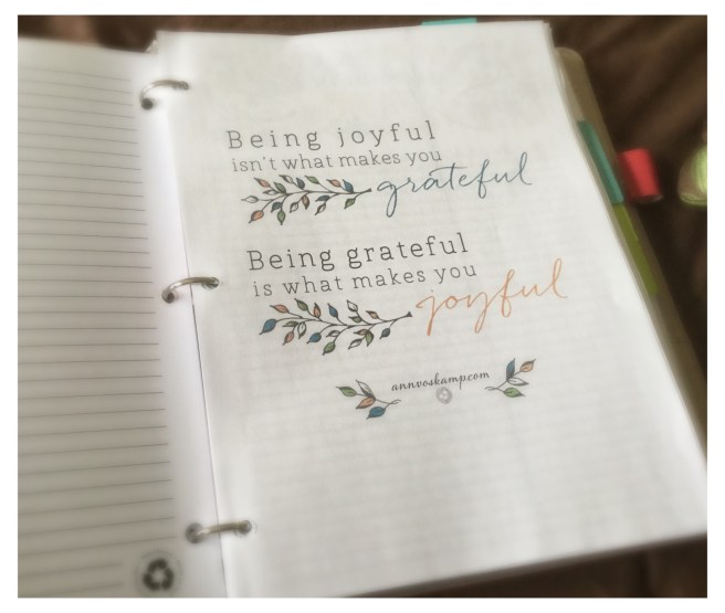 I remembered I had downloaded some cute planning pages from Snapfish a long time ago, and I knew they would be perfect. There is just one line for each day of the month. So I put the pages for the school year months right into my homeschool planner. It is the first thing I turn to every morning when I am skimming the day’s plans after my quiet time…before the rush and work of the day begin. I simply write a one line thank you prayer or list a gift I am especially grateful for in that moment or from the day before. It is one of the things in my morning routine that I look so forward to. It’s simple, but it sets the tone and opens my eyes and heart to God’s blessings as I head into a new day. Sometimes it’s just giving thanks for a beautiful sunrise, a bird I see swooping outside my livingroom window. Sometimes it’s something practical like a delicious meal or a comfortable bed. Sometimes it’s a melt-my-heart-moment with one of my kids. Sometimes it’s a smell, a scene, a good book, a memory.