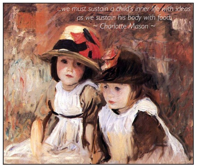 “Education is a life. That life is sustained on ideas. Ideas are of spiritual origin, and God has made us so that we get them chiefly as we convey them to one another, whether by word of mouth, written page, Scripture word, musical symphony; but we must sustain a child’s inner life with ideas as we sustain his body with food.” (Charlotte Mason)
