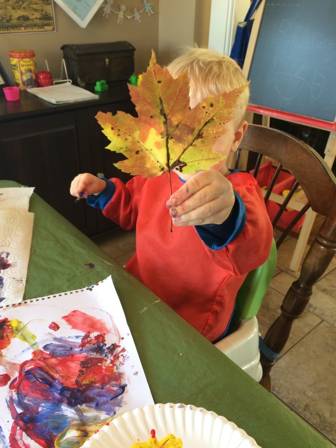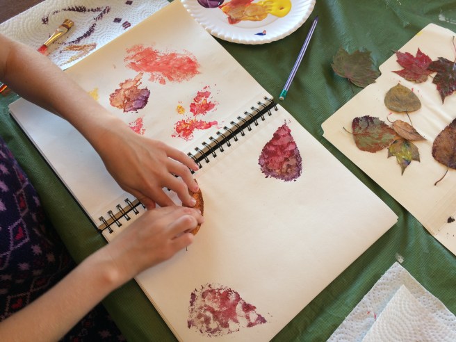 Yes, the leaf prints were fun and easy enough for the younger ones to join in on!
