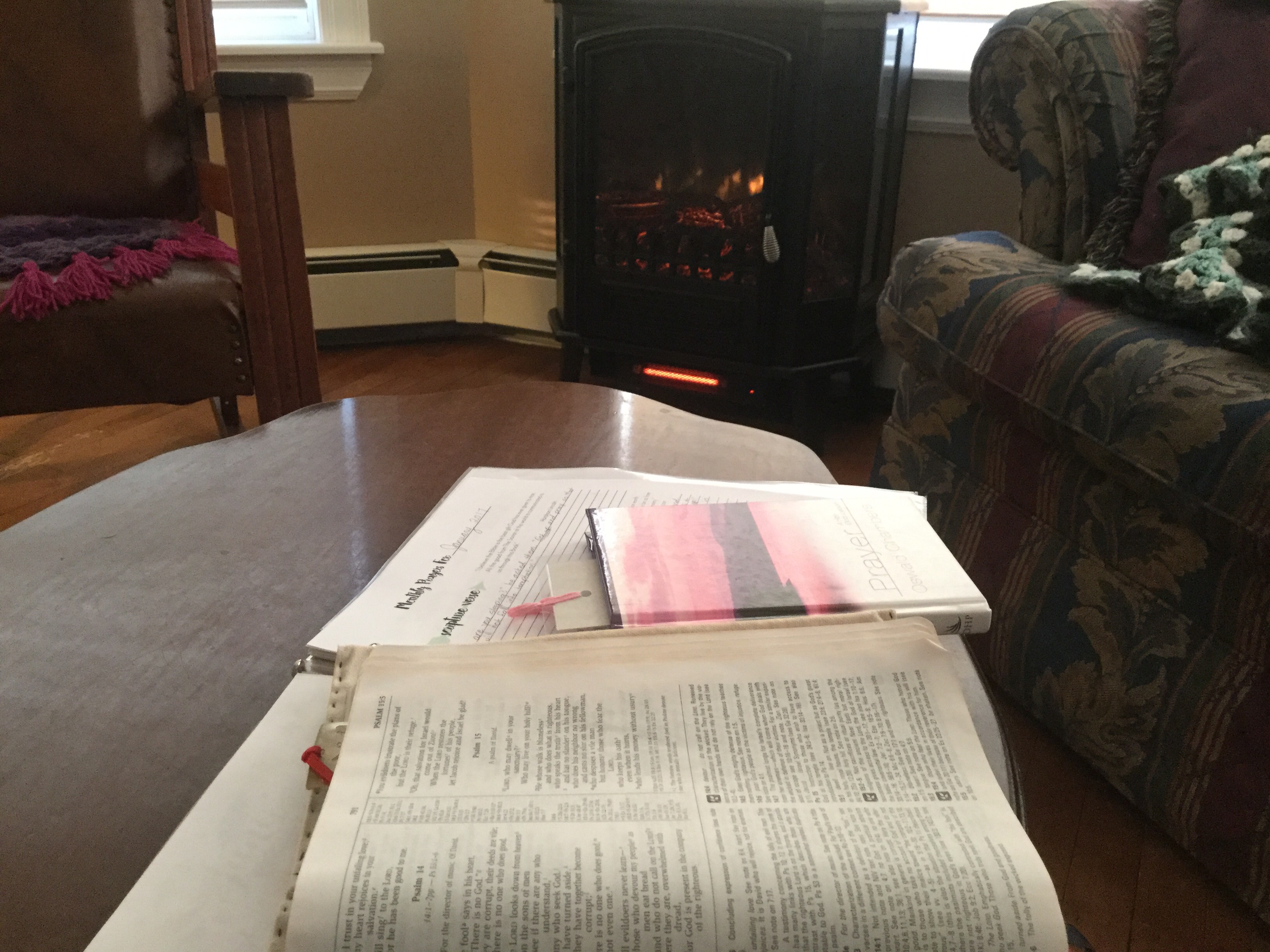 This has been my challenge lately. When the alarm sounds in the early morning and I’m tempted to just roll over I remember “Get up and pray”. And I won’t deny it – this new electric fireplace has made getting up on these chilly mornings a little easier too! It’s a cozy spot to start the day.