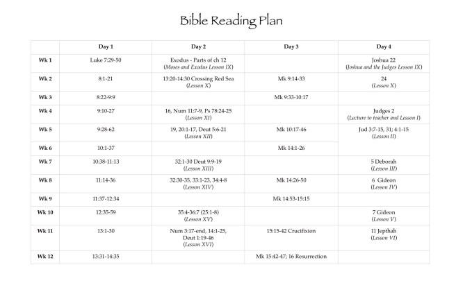 Does anyone else get excited to start new routines in their spiritual life when a calendar year flips over? I always look forward to switching things up in my quiet time routine. I enjoy deciding how to tackle my Bible reading and praying for another twelve months. Last year I opted to read through the Bible chronologically again (which I love doing), but this year I’ve decided to streamline things a bit. I took the weekly Bible readings from Ambleside Online that my two oldest daughters are reading and made those my focus for the next twelve weeks. That way when they come to me with their narrations we can better discuss the verses afterwards if I have already read them and meditated on them too. I’m only two weeks in to this new routine, but I’m loving it. I have a chunk from Mark and Luke to read each week as well as passages from Moses and the Exodus and Joshua and the Judges (along with the appropriate lessons from the J. Paterson Smyth commentaries). Pre-reading their school readings is something I know I need to be doing more of so this seemed like an excellent way to combine something I do for my own enrichment and for theirs. Here’s my plan…