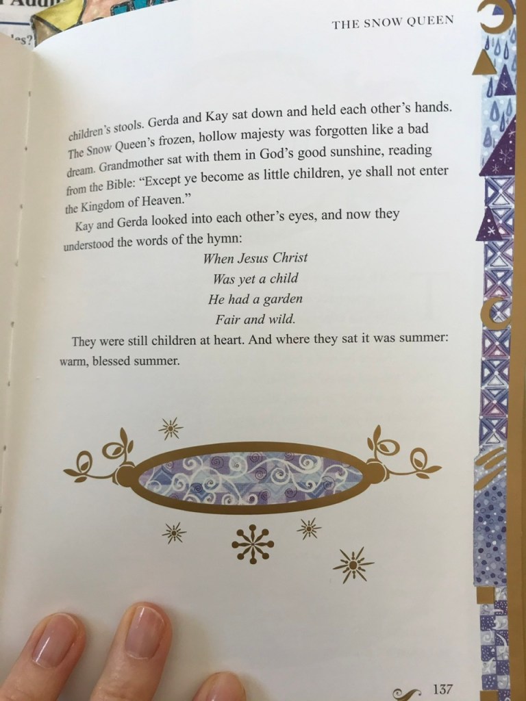 I might have been feeling badly yesterday about being back home from our New Hampshire vacation, but during the course of the morning I was transported to Persia and Greece and the bleak moorlands of Scotland. I stood before the Sanhedrin in Jerusalem with Peter and John. I was arrested and thrown into jail with Gepetto in Tuscany. I spent time in the Tower of London with Lady Jane Grey. And I even went on a bone-chilling adventure to Lapland with Gerda to rescue little Kay from the clutches of the Snow Queen.