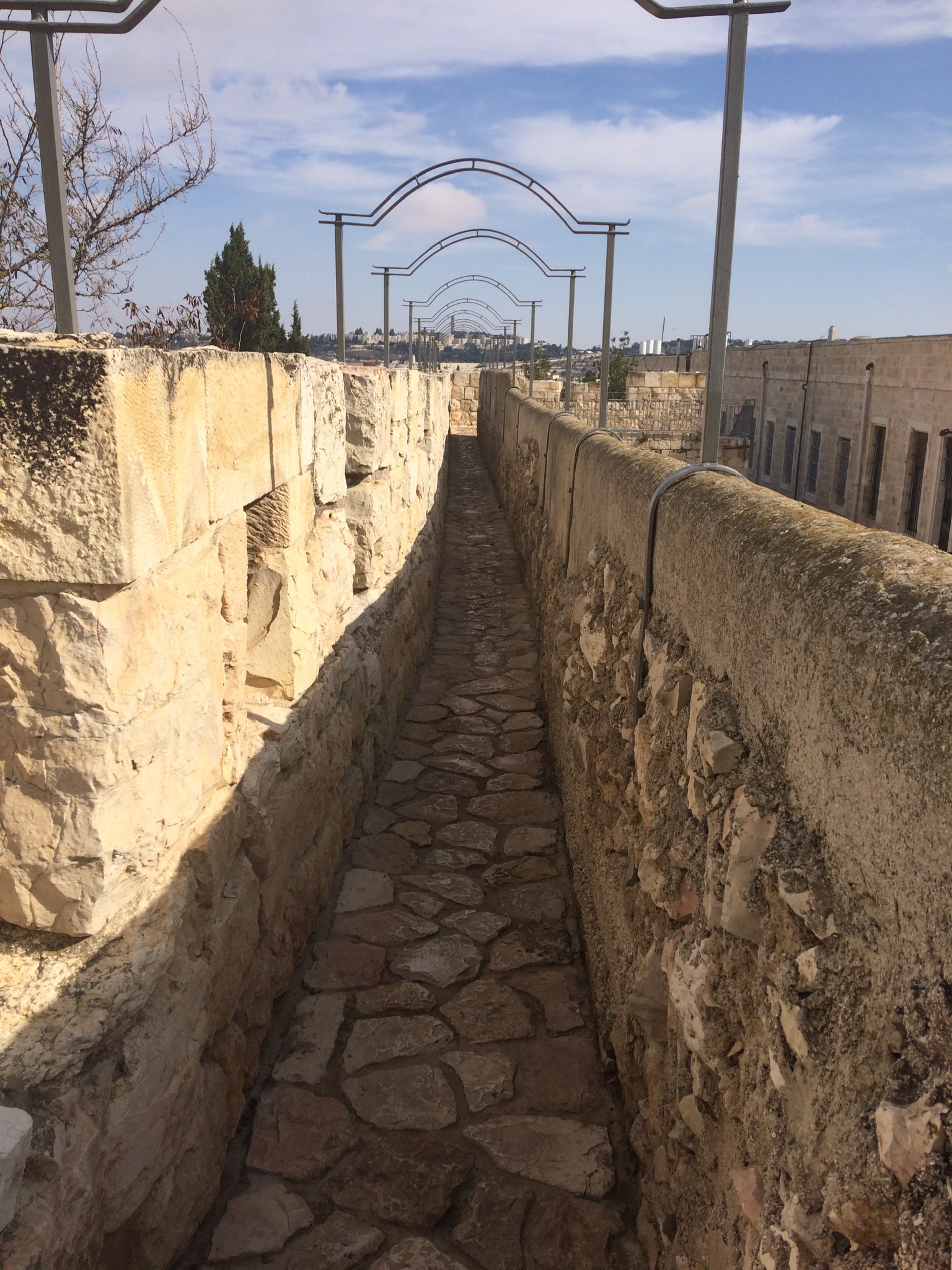 It’s the first time I’ve ridden the bus alone, but I know my way. First to the train station. Then the train will take me all the way down Jaffa Street. I know where to get off. From there, it’s just a short walk to the wall of the Old City. I’ll go in Jaffa Gate and follow the signs for the “Ramparts Walk.” That’s what I have planned for this morning. I am going to walk along the top of the wall of the Old City. The views will be amazing.