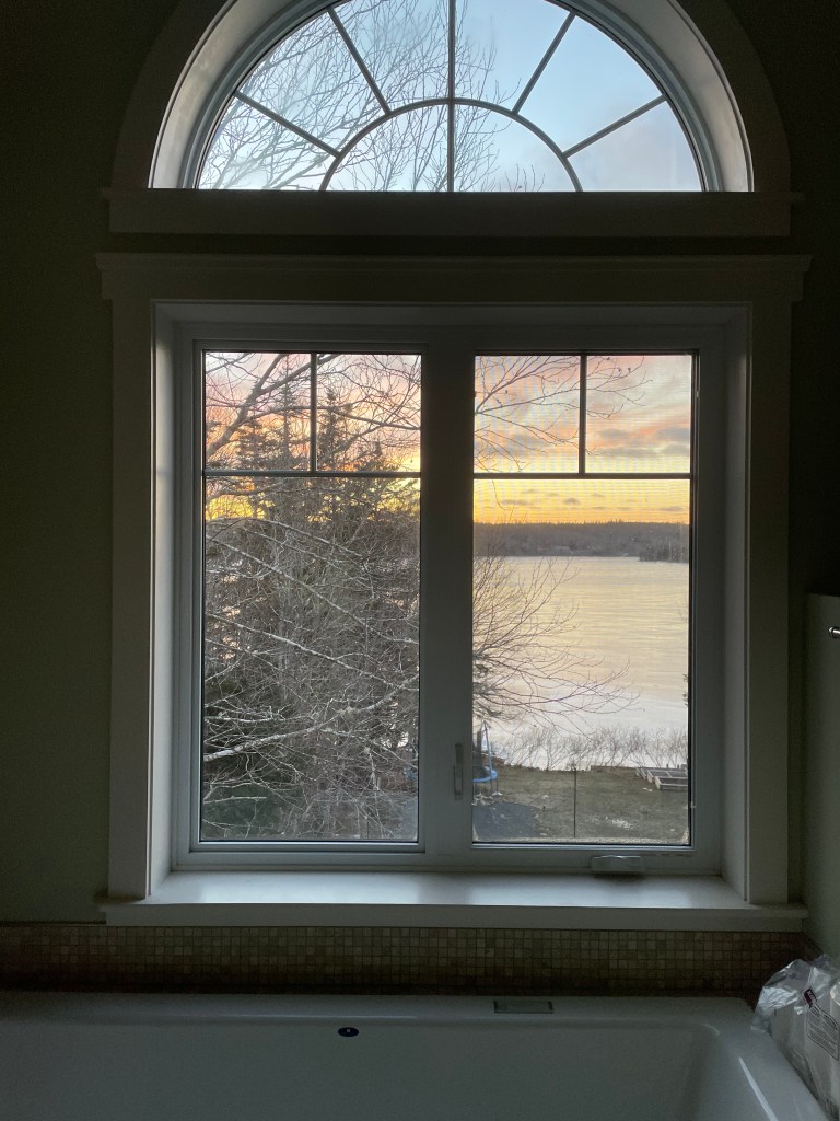 Then we had another exciting animal spotting this morning. I was upstairs in our ensuite bathroom doing my morning stretches (I know, strange spot, but our new bathroom is about the size of our old bedroom and the coldest room in the house, so it’s perfect for setting up my mat and not overheating while I do my Pilates). Anyway, I looked out the window and down towards the lake and I saw something dark on the ice. A couple of seagulls flew in to see what was up, and then the dark blob dove back under the ice. He kept coming up for air every few minutes, and we eventually figured out it was a seal. He was just a few feet out from where our dock will sit in the summer.